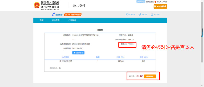 【网上确认及网上缴费】