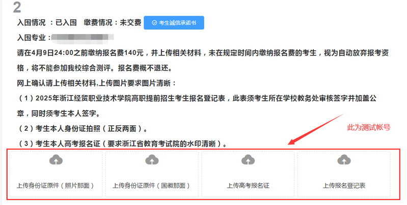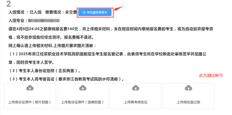 入围综合测评资格的考生进行网上确认和网上缴纳报名费。请在4月9日24:00前登录浙江经贸职业技术学院招生信息网(http://zs.zjiet.edu.cn)进行网上确认和网上缴费。报名费标准为140元/人。若在规定时间内未缴纳报名费的考生视为自动放弃,不得参加综合测评考试。报名费和报名材料概不退还。