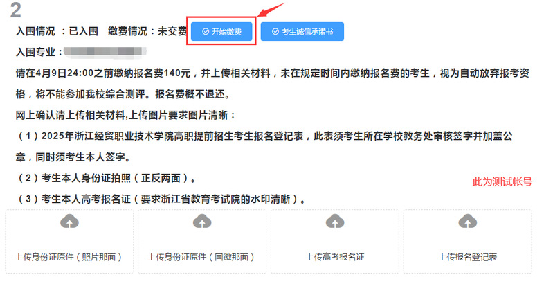 【温馨提醒】 缴费之前请务必核对姓名是否本人,缴费之后刷新“提前招生辅助系统”,显示“已缴费”,表示缴费成功。