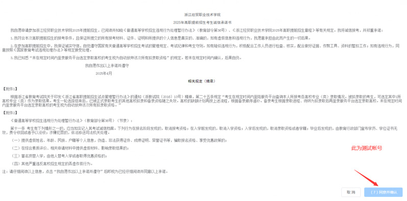 第三步,网上签订“诚信考试承诺书”, 考生阅读后点击“同意并确认”,即视为已经仔细阅读并同意以上承诺。