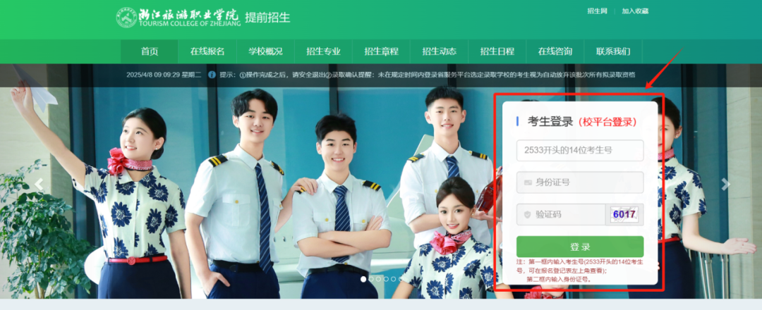 1.请考生在4月8日至综合素质测试前自行登录我校提前招生系统网上打印浙江旅游职业学院提前招生准考证,务必用A4纸纵向打印。