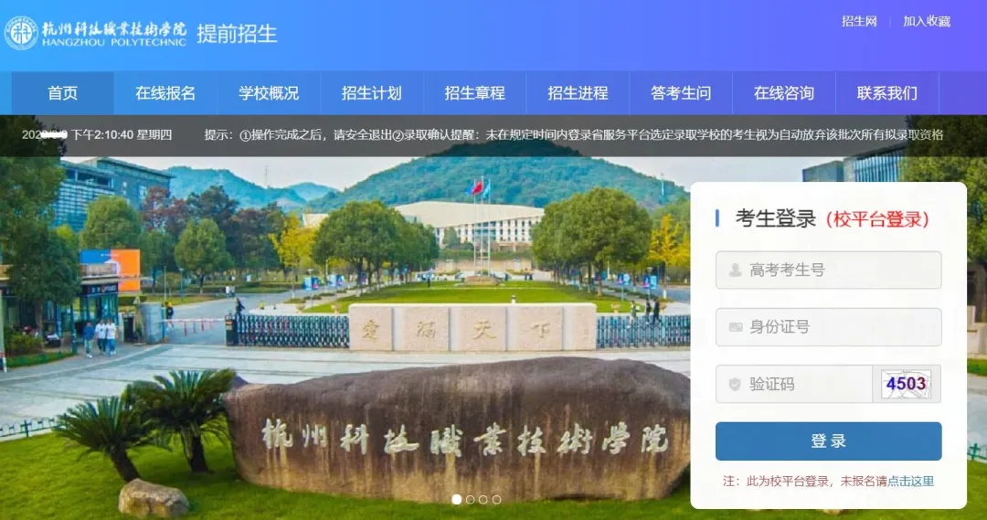 1.进入我校高职提前招生网址https://tqzshk.eduw.cn/,输入考生号、身份证号及验证码,登录校平台。