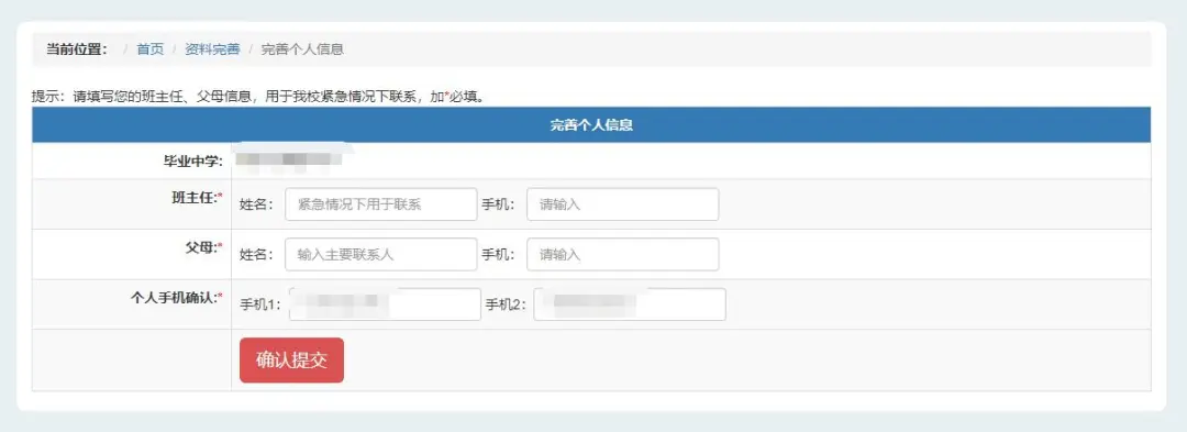 2.完善个人信息,确认提交。