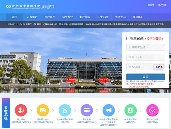 自4月5日起考生可登录我校提前招生系统(https://tqzs.hzvtc.edu.cn)查询入围情况,具体方法如下: