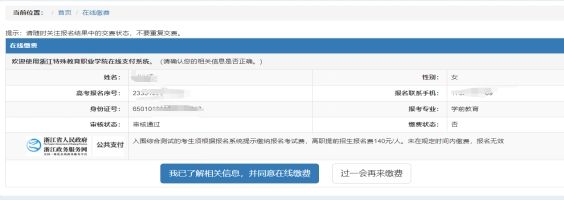 4月12日9:00起,在浙江省考试院报名系统审核通过的考生,可登录我校提前招生系统查询本人入围情况。入围考生须根据报名系统提示,在规定时间内缴纳考试费。高职提前招生报名费140元/人,一经缴费概不退还,未在规定时间内缴费,报名无效。