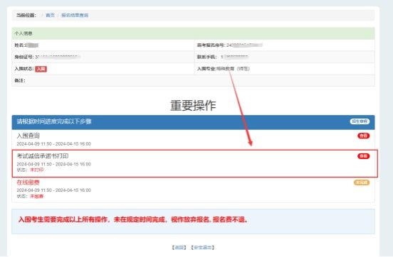 (三)入围考生按要求打印考试诚信承诺书